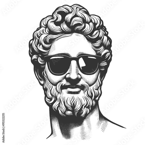 Greek statue in sunglasses isolated vector style with transparent background illustration