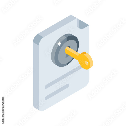 Data Access Control Icons. Isometric vector illustration set Data access control: user permission list, lock icon over folder,