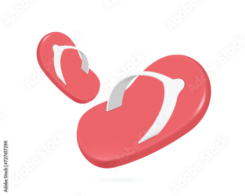 Red flip flops on the sand. Summer vector illustration for banner, card, invitation, sales.