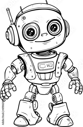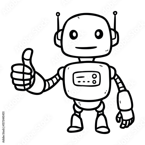 Cute humanoid robot icon in sketch style as concept of robotics artificial intelligence future tech automation machine learning and digital interaction