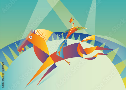 A running horse vector art illustration, solid color flat style, isolated white background (2)