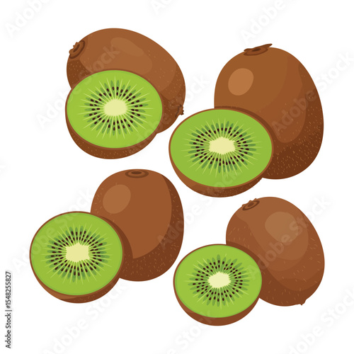 kiwi fruit whole and half  isolated on white background. Vector illustration. Healthy food design. ingredients for cooking.