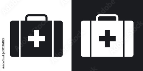 Outline first aid icon, with editable stroke. First aid kit, medical box pictogram. Emergency assistance and rescue life, medical bag with drug and medicaments, home aid kit, health care.