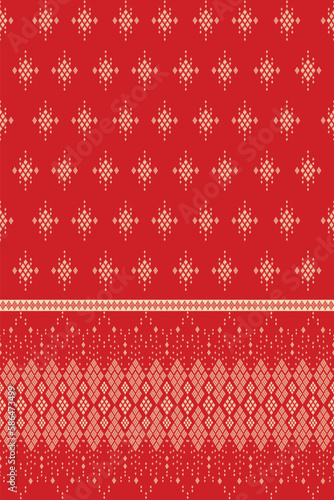 Beautiful Motif ikat geometric Asian ethnic seamless pattern. Lanna Northern Thai,  Chinese Sarong, Indian Sari style. Design for carpet, wrapping, textile, clothing, home decor, fabric, batik