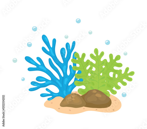 Collection of seaweeds, underwater sea plants, shells. Vector illustration of seaweeds, planting, marine algae and ocean corals silhouettes. Collection of cartoon algae.
