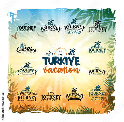 Collection of modern minimalist resort logo design, oasis beach resort vector illustration