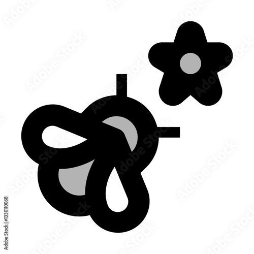 Bee and Hibiscus Black Fill Icon