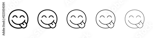 Yummy smile emoji with tongue lick mouth. Delicious tasty food symbol for social network. Yummy and hungry line icon. Savory gourmet. Enjoy food sign. Vector illustration isolated on white background.