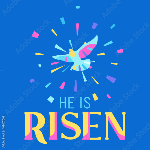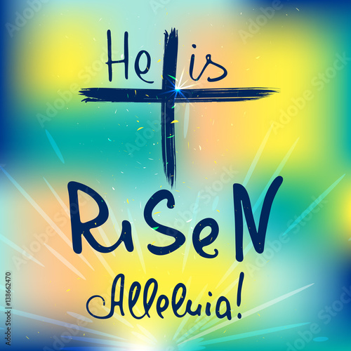 He is risen Easter holiday vector calligraphy lettering. Christian religious card for Easter celebration. Jesus Christ resurrection poster