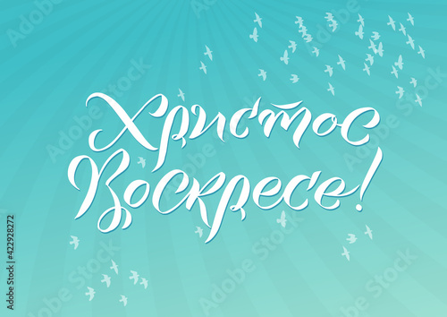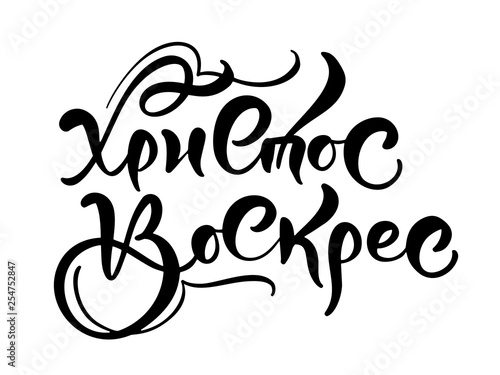 Vector illustration. Orthodox holiday. Christ is risen festive inscription in Russian. Christ is risen typography vector design for greeting cards and poster.Russian translation: Christ is risen.