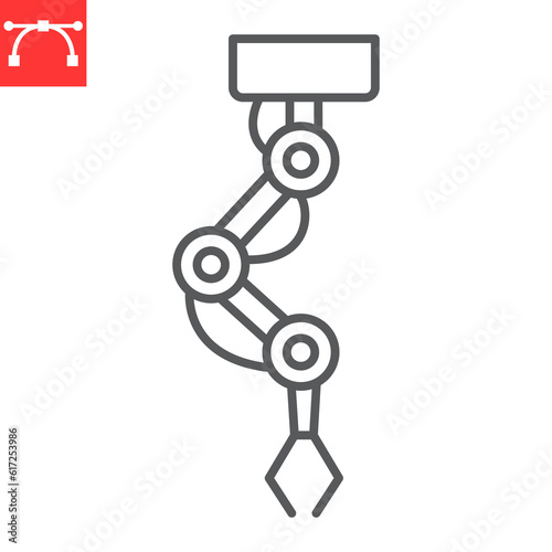 Mechanical robot arm machine icon. Manufacturing industry mechanical robot arm. AI picker, picking robot, technology hydraulic robotic hand, vector illustration