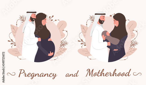 Happy maternity set with parents characters flat vector illustration isolated.