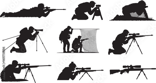 Sniper Silhouettes Vector Illustration on Transparent Background for Military Use