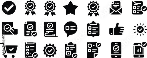 Diverse collection of approved and correct icons in a minimalist and professional style