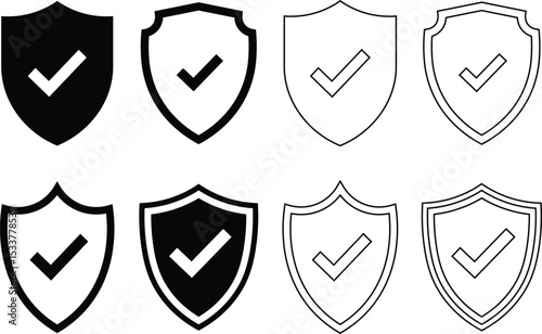 Shield check mark icon or security shield protection icon with tick symbol. protect user icon , add shield plus icon