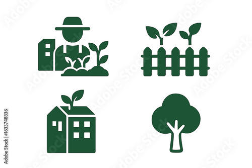 A vibrant collection of urban development icons showcasing sustainable buildings, green spaces, and community growth, designed with a modern and eco-friendly aesthetic.
