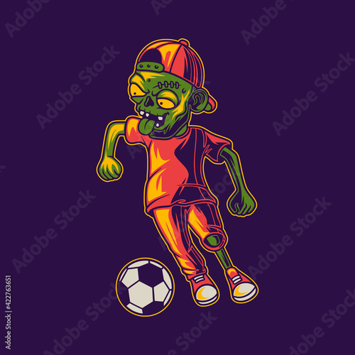 Spooky zombie soccer player cartoon character on white background