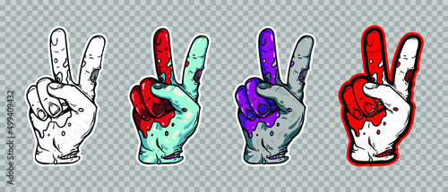 Vector set of illustrations of zombie hands, elements on the Halloween theme.