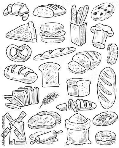 Bread sketch. Flour mill baguette french bake bun food wheat traditional bakery basket grain pastry toast slice set