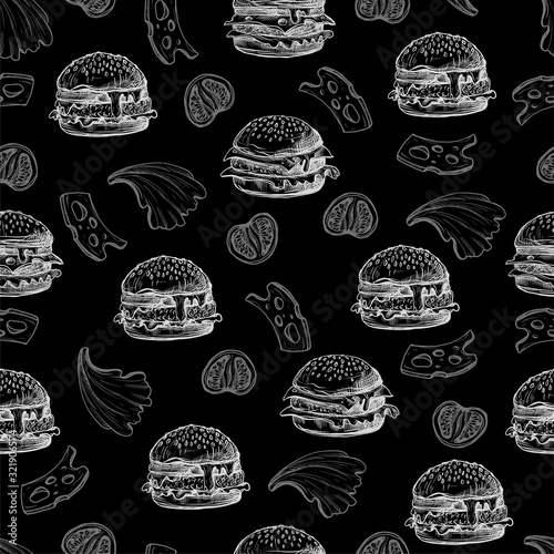 Burger sandwich hand drawn sketch food Restaurant business concept.Vector illustration.