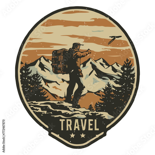 Bigfoot hiking. Sasquatch cartoon clipart. rambling wilderness trek adventure for cryptozoology pursuit.