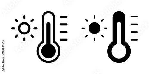 Midsummer thermometer icon. High temperature thermometer and sun. Vector.