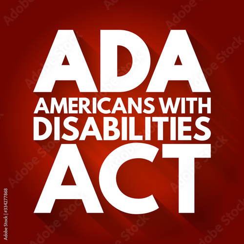 ADA Americans with Disabilities Act - civil rights law that prohibits discrimination based on disability, acronym text concept background