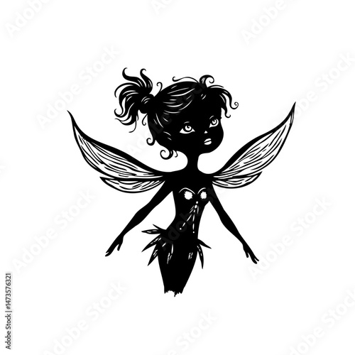 Black fairy sprinkling stars silhouette wings