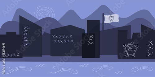 post-apocalypse sign with skull and gas mask, grunge vintage design t shirts
