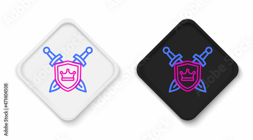 Glowing neon line Medieval shield with crossed swords icon isolated on black background. Colorful outline concept. Vector