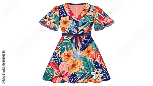 Beautiful Floral Summer Dress Sleeveless Girls Fashion Cartoon Vector Illustration Clipart
