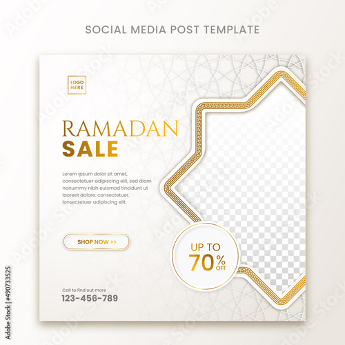 Ramadan kareem arabic islamic elegant white and golden luxury ornament background with arabic pattern and decorative ornament arch frame