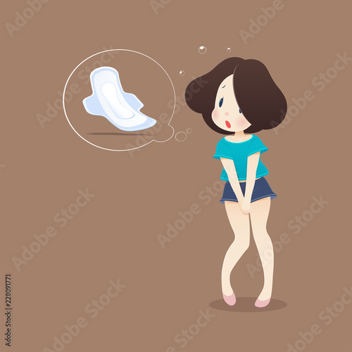 Cartoon vector character girl pain menstruation. Health care vector illustration.