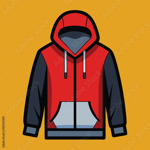 Hoodie t-shirt design flat sketch Illustration, short sleeve Hooded sweatshirt with front and back view, winter jacket for Men and women. Casual hoodie t shirt for winter