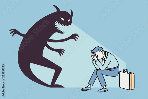 A young male African character covering their face with hands, a desperate situation, racism, stress and anxiety, mental health issues
