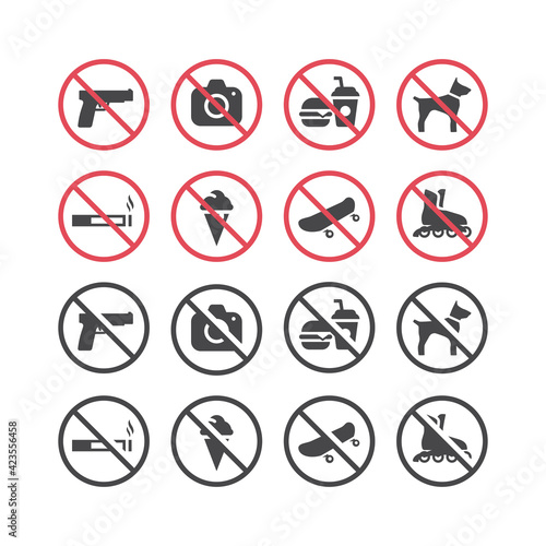 Prohibition signs. Set of prohibition signs isolated on a white background. Vector illustration.