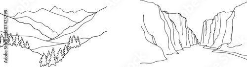 Detailed Mountain Range Outline with Sharp Peaks and Ridges 1.