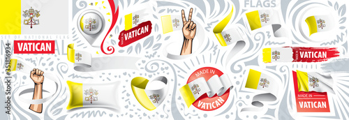 Vatican badge. Flag of Vatican in glowing network geometric style. Beautiful vector illustration.