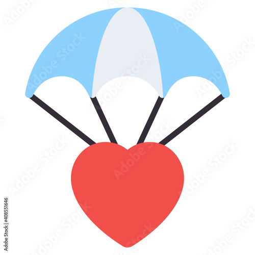 A flat design icon of heart parachute