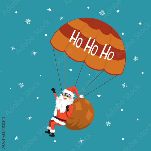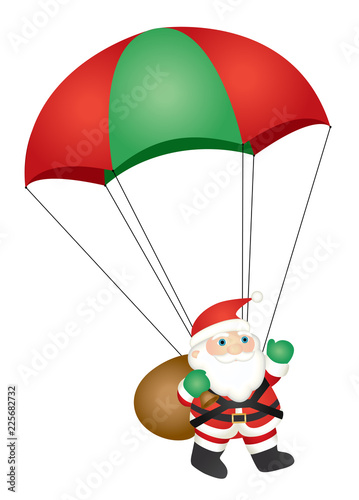 Santa Claus flying with parachute