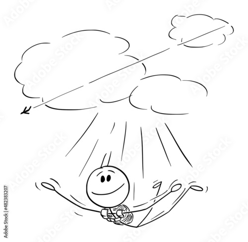 Skydiver Jumping with parachute and Flying Through Air, Vector Cartoon Stick Figure Illustration