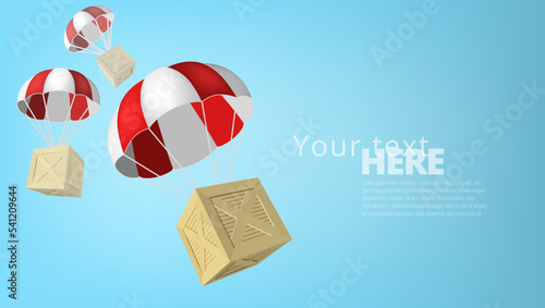 Box falling with parachute. Airdrop concept design, box fall from the helicopter.