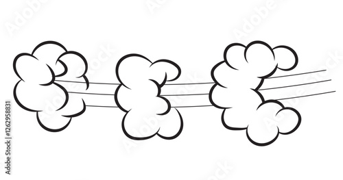 Comic speed vector cloud. Catroon motion puff effect explosion bubble, jumps with smoke or dust. Fun onomatopoeia illustration