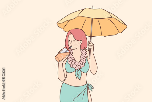 Woman in bikini enjoy cocktail on beach