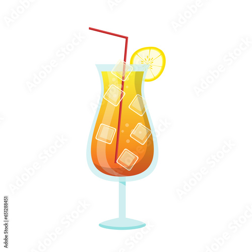 Tropical Drink Silhouette Vector with Umbrella and Citrus Slice.