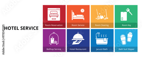 Hotel Amenities Lineal Color Vector Illustration Icon Sticker Set Design Materials