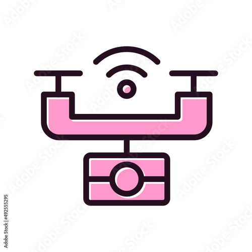 Drone or quadrocopter aerial camera icon with minimal style. Vector Illustration.