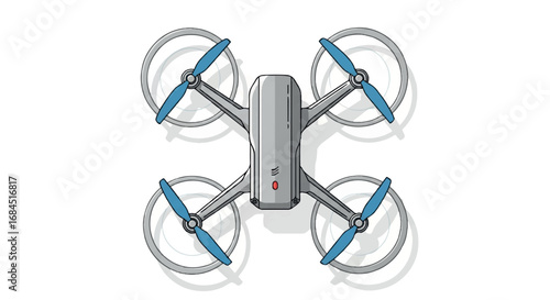 Blue Drone with Camera Illustration on White Background.