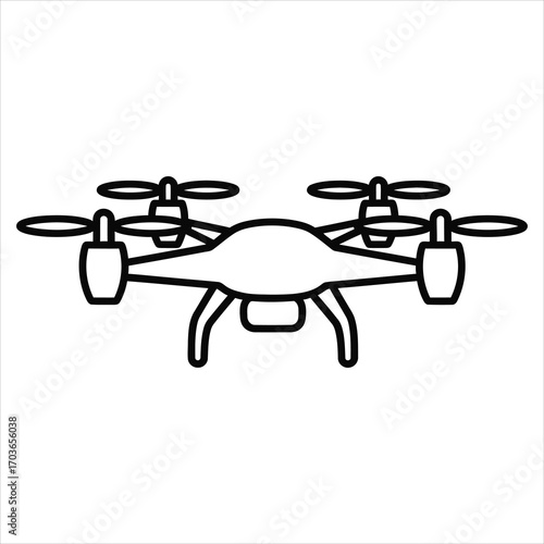 Outline vector illustration of a modern drone with four propellers for technology and innovation concepts