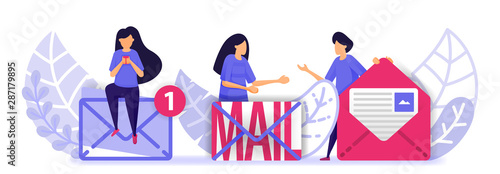 People are sending and receiving e-mail message. Correspondence for communication and making connection and network for business and personal. Vector Illustration For Web, Landing Page, Banner, Mobile